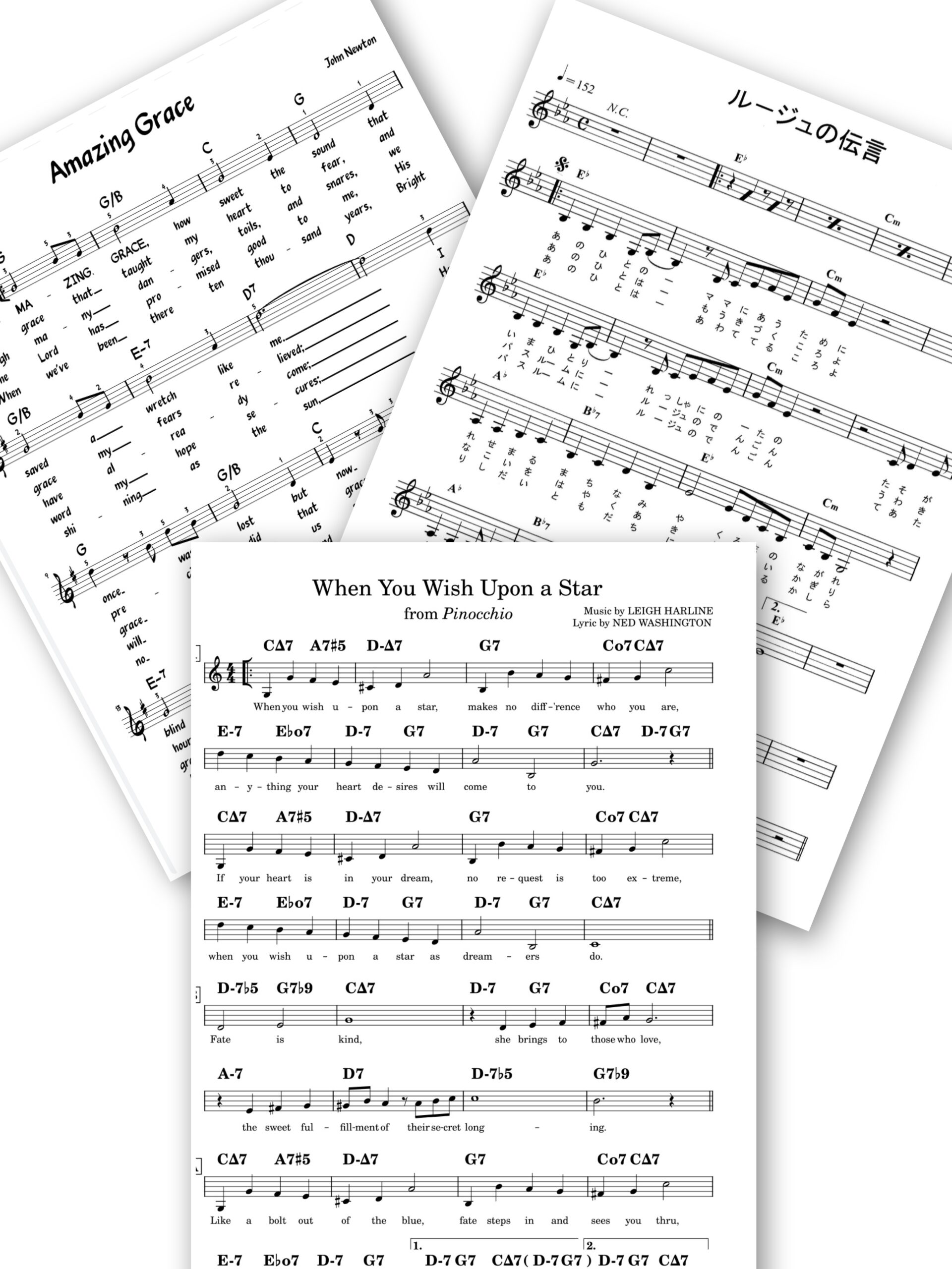 こちらは、レッスンで扱うリードシートの一例です。